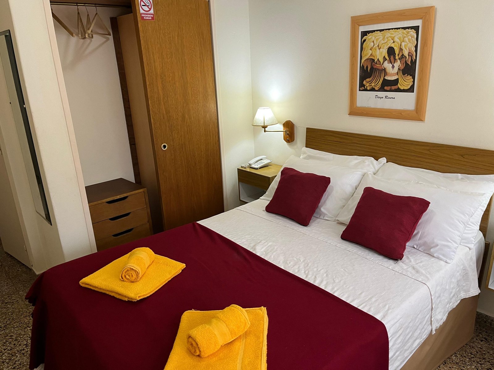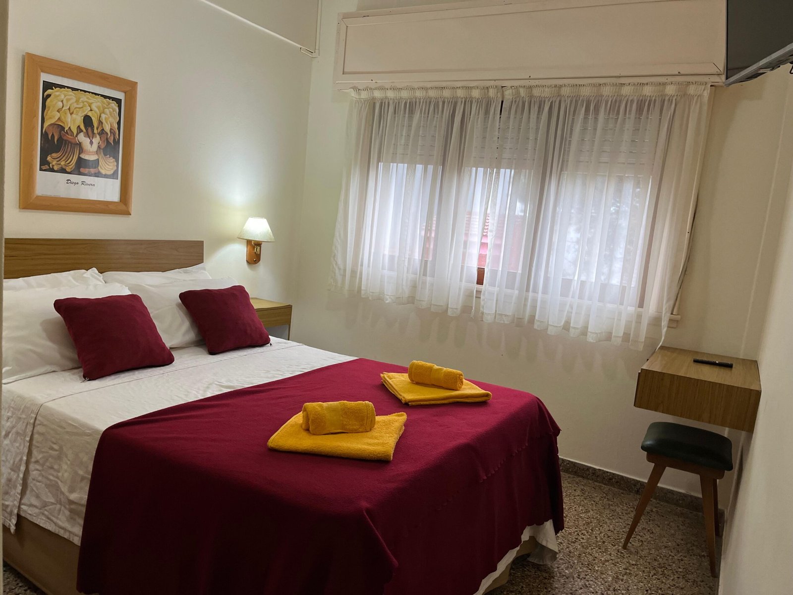 La habitación tiene una superficie aproximada de 8m², cuenta con una cama King. Con un diseño funcional y está pensada para quienes buscan un espacio acogedor para descansar. Cuenta con Aire Acondicionado y baño privado con ducha antideslizante, toallas y elementos de aseo.