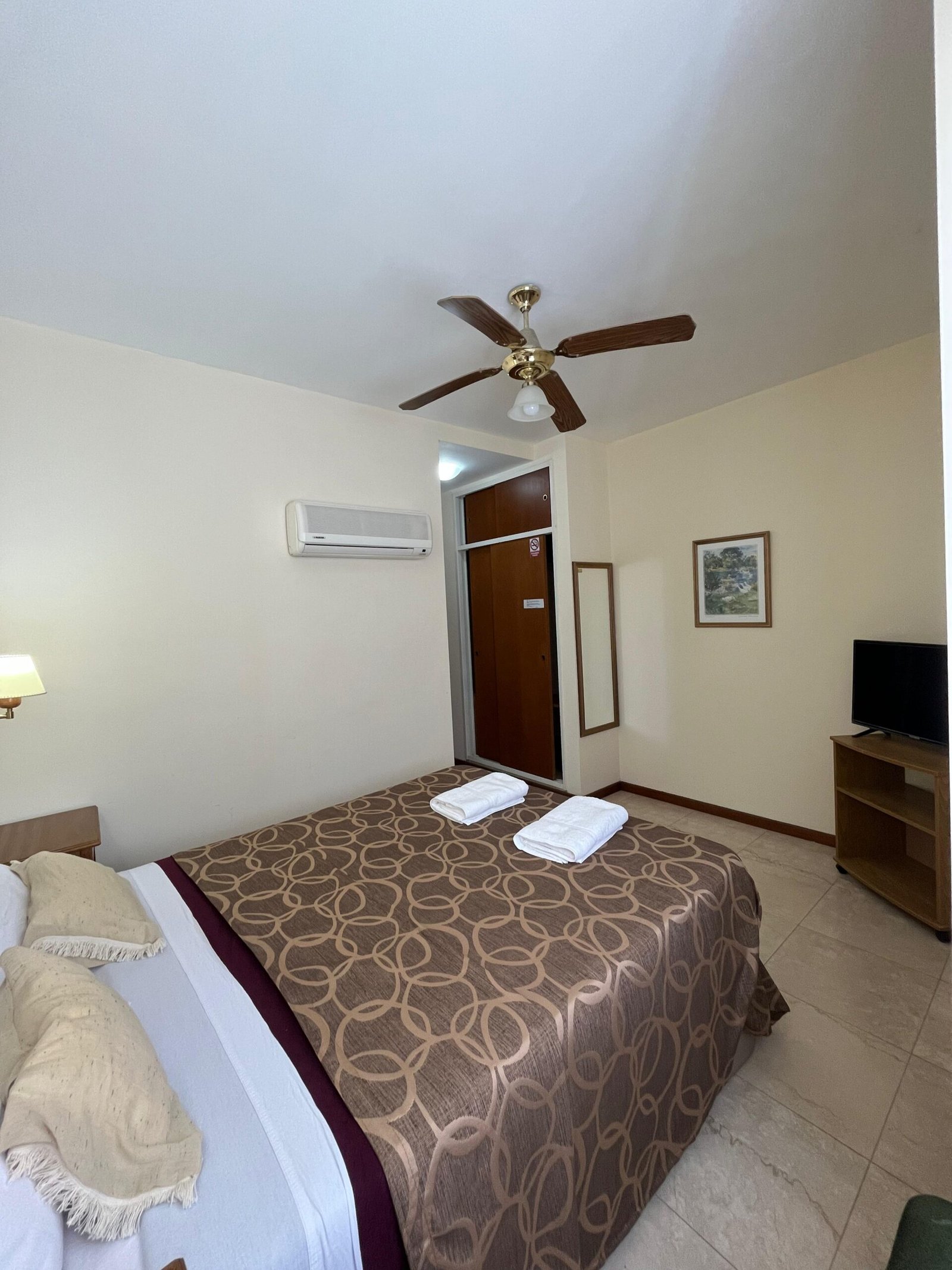 La habitación tiene una superficie aproximada de 8m², cuenta con una cama King. Con un diseño funcional y está pensada para quienes buscan un espacio acogedor para descansar. Cuenta con Aire Acondicionado y baño privado con ducha antideslizante, toallas y elementos de aseo.