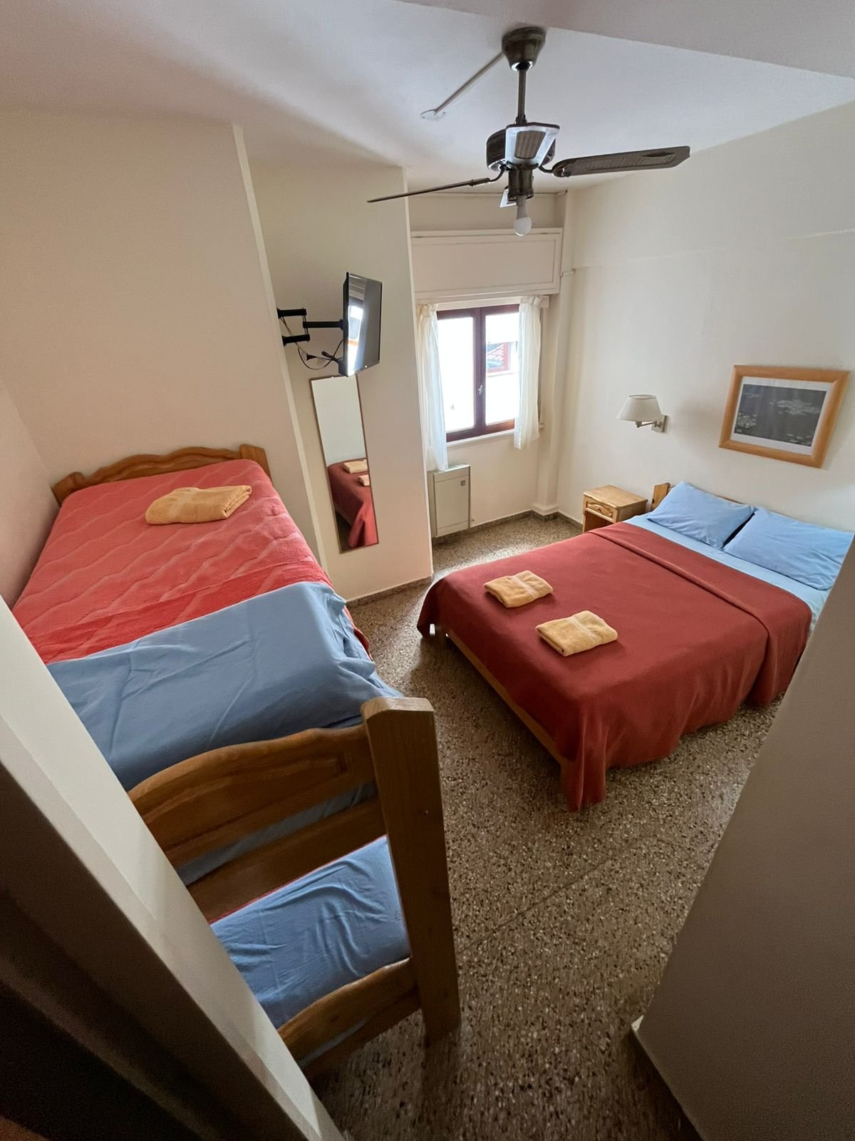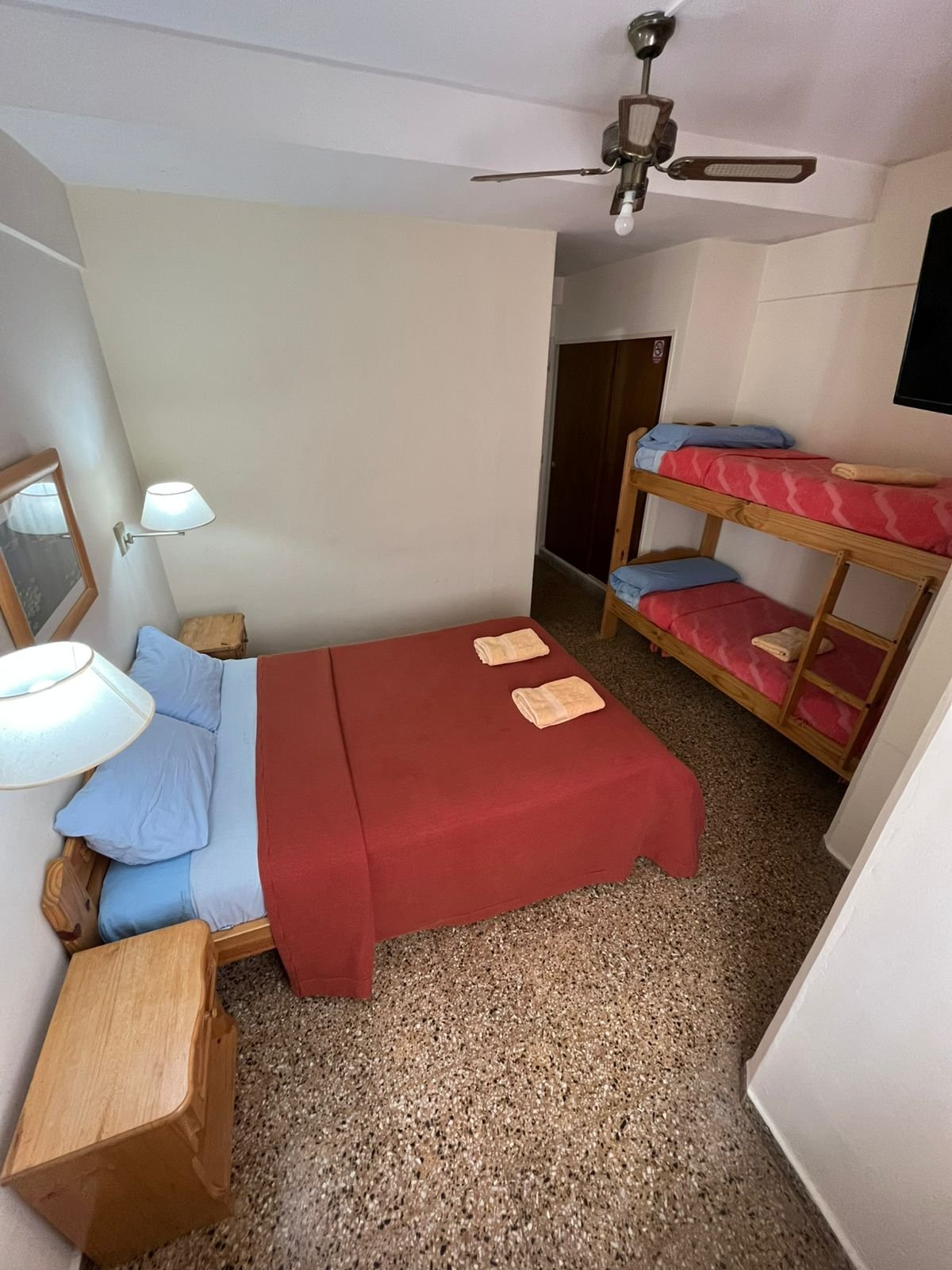 La habitación tiene una superficie aproximada de 8m², cuenta con una cama doble y una litera capacidad máxima 4 huespedes. Con un diseño funcional y está pensada para quienes buscan un espacio acogedor para descansar. cuenta con ventilador de techo, también ofrecemos con aire acondicionado, baño privado con ducha antideslizante, toallas y elementos de aseo.